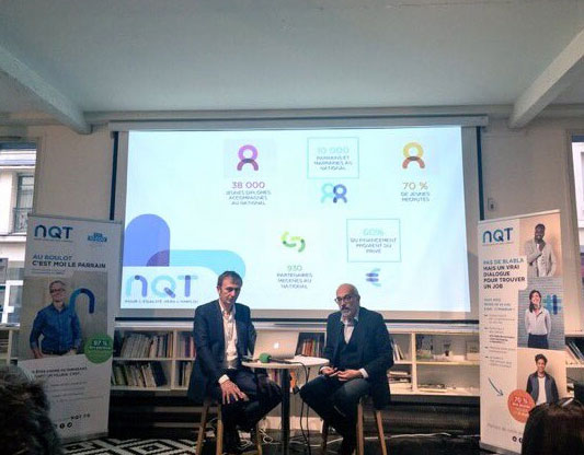 L’association NQT (Nos Quartiers ont du Talent) s’efforce depuis plus de dix ans à compenser le déterminisme social par un système de parrainage qui met en relation des actifs expérimentés avec des diplômés méritants issus de quartiers prioritaires. Il s’agit, selon les mots de son co-fondateur Yazid Chir, de « mettre la lumière sur des jeunes qui devraient être des modèles pour leur pairs ».